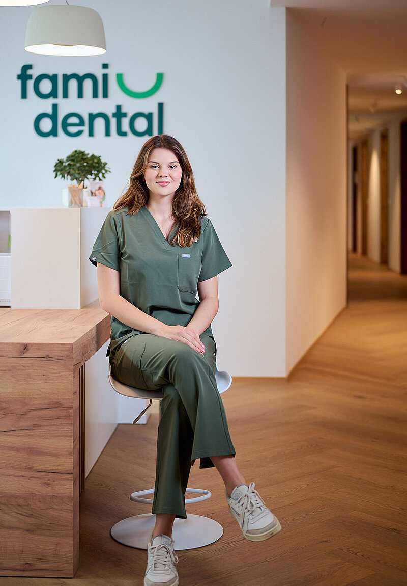 Ich befinde mich in der Ausbildung zur Dentalassistentin in der Zahnarztpraxis Famidental. Jeden Tag lerne ich Neues dazu – von der Arbeit am Behandlungsstuhl bis zur Betreuung unserer Patientinnen und Patienten. Besonders motiviert mich der freundliche Umgang im Team und die Möglichkeit, Schritt für Schritt mehr Verantwortung zu übernehmen. Mit viel Engagement und Freude unterstütze ich unsere Praxis und begleite die Patientinnen und Patienten auf ihrem Weg zu einem gesunden Lächeln.